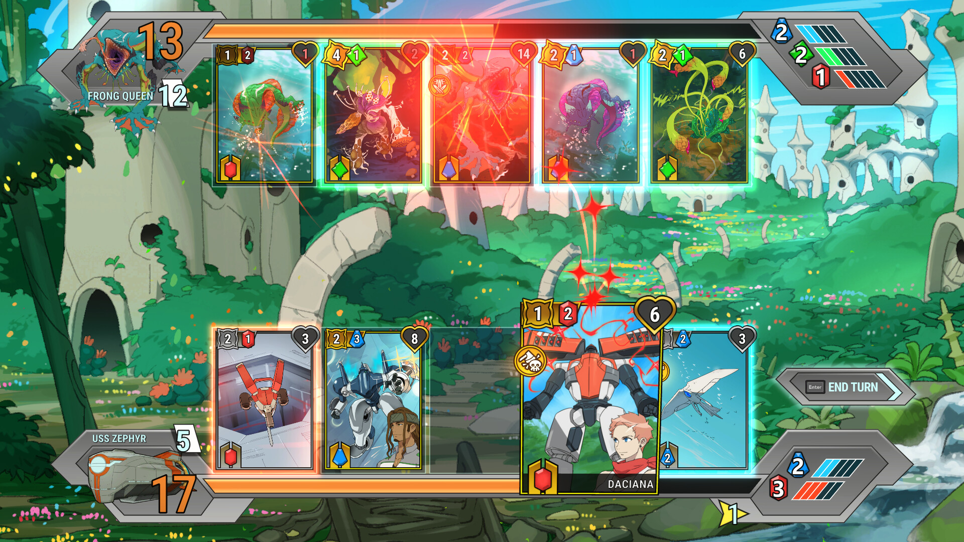 Battle Suit Aces was easily my most anticipated game going into Next Fest. I’ve been looking forward to this anime-styled non-roguelike deckbuilder with some sick mech designs for a while now. Gotta say, I was not disappointed. The gameplay seemed a little simplistic at first, but Aces does that thing where it gives you just enough of the intro to get a taste for it, then skips you ahead and says “okay, now you have these other abilities at your disposal, here’s where you’ll get to eventually.” The crewmates are interesting and varied, though I’m not super fond of all the voice work, and I’m really enjoying the method of crafting accessories for your mechs and drones and sticking them onto cards so they all start to feel more personal; I’m also interested in the story, which – while it seems to be written with a lot of popular sci-fi tropes, well, those things became tropes for a reason.
